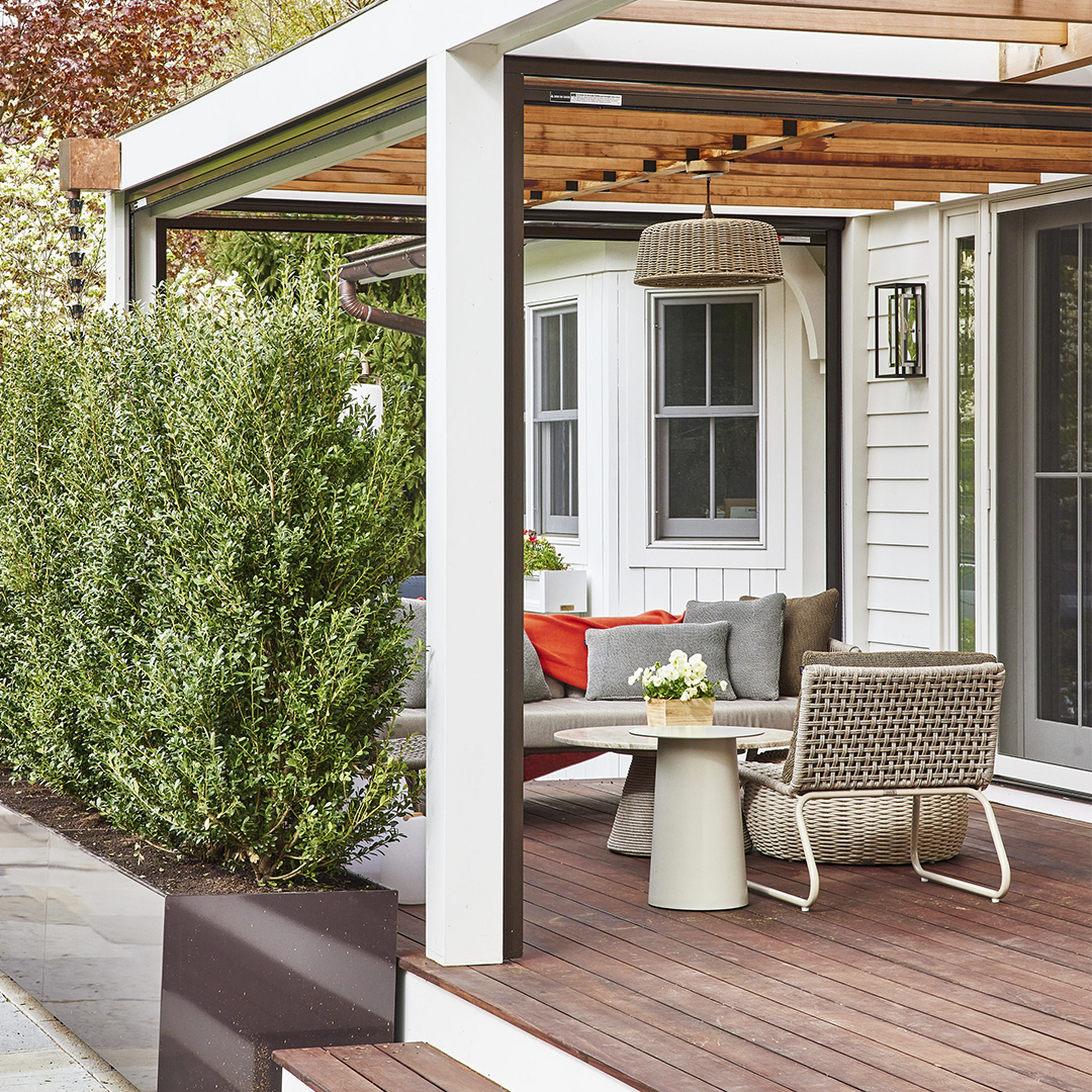 We started the design exercise with a series of subtractive gestures on the exterior, while enlarging and unifying window sizes to pull additional natural daylight into the home’s interior. The addition of a Pergola and new entry doors on the rear embraces the expansive backyard and provides a more balanced connection and circulation between the interior and exterior. Interior spaces were met with a sophisticated and quiet palette, often tying in some of the client’s existing furniture.