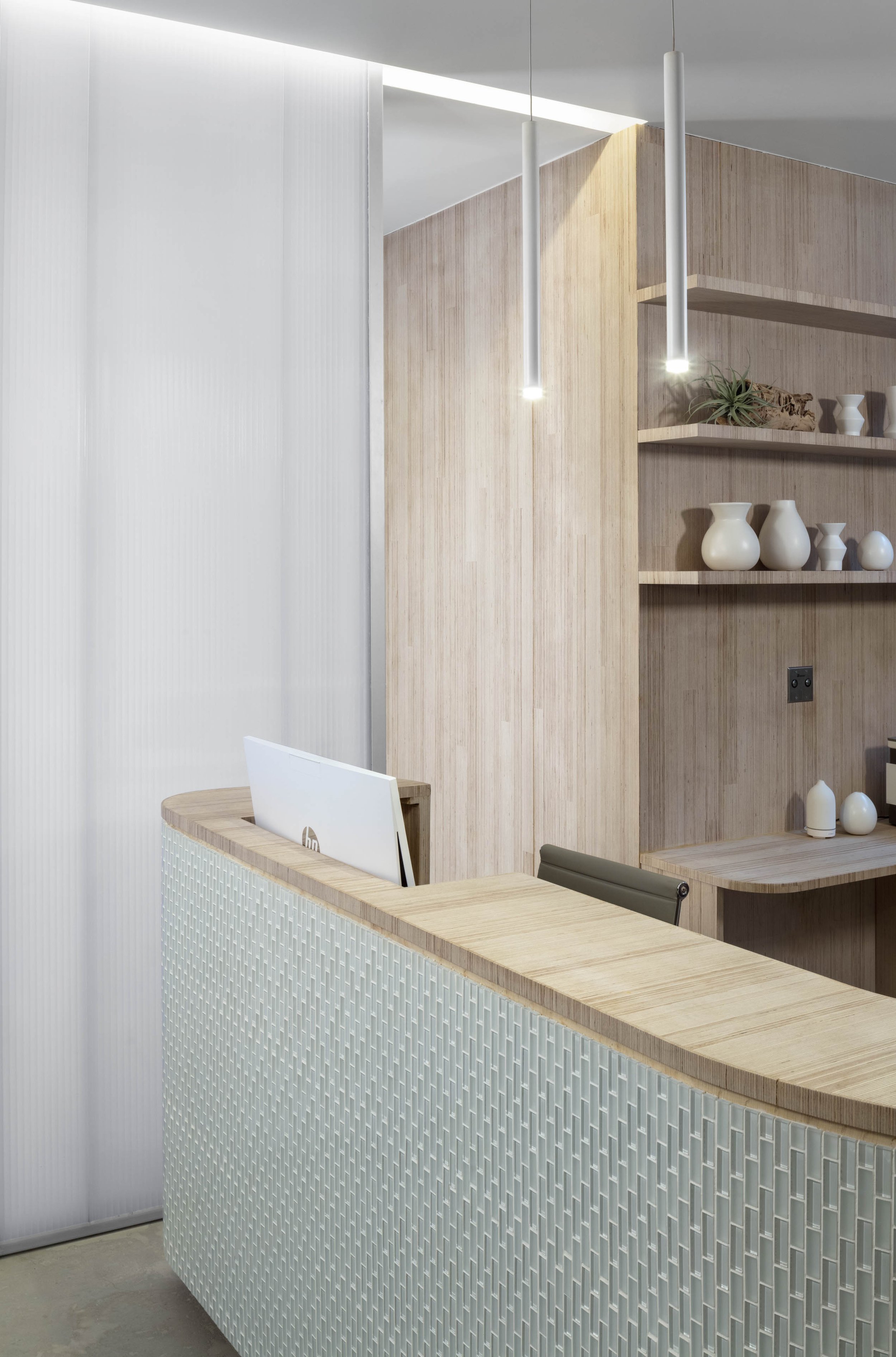 The quality of natural daylight in the raw space became both a starting point in the design process and a priority to preserve for both the user experience and energy performance. The project’s material and spatial concepts were further developed by merging the building’s inherent structural expression and solar orientation with the dental practice’s brand ‘narrative’ and core values of honesty, empathy, and serene professionalism.